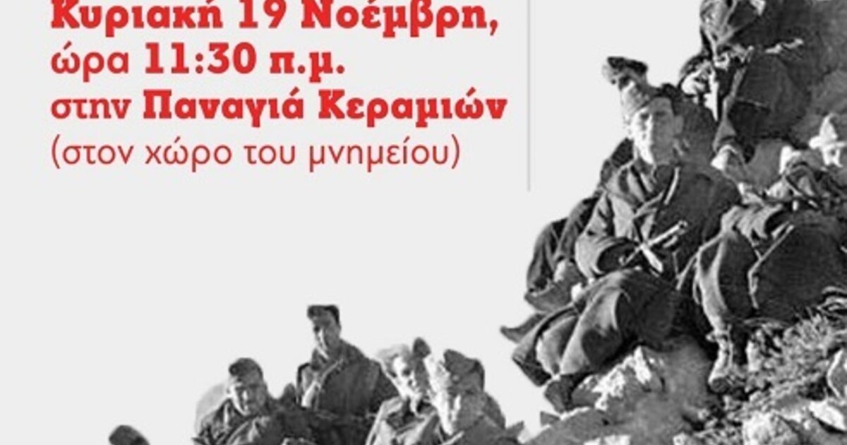 Η εκδήλωση θα πραγματοποιηθεί την Κυριακή 19 Νοεμβρίου 2023 στις 11:30 πμ στο χωριό Παναγιά Κεραμειών, στο χώρο του μνημείου.