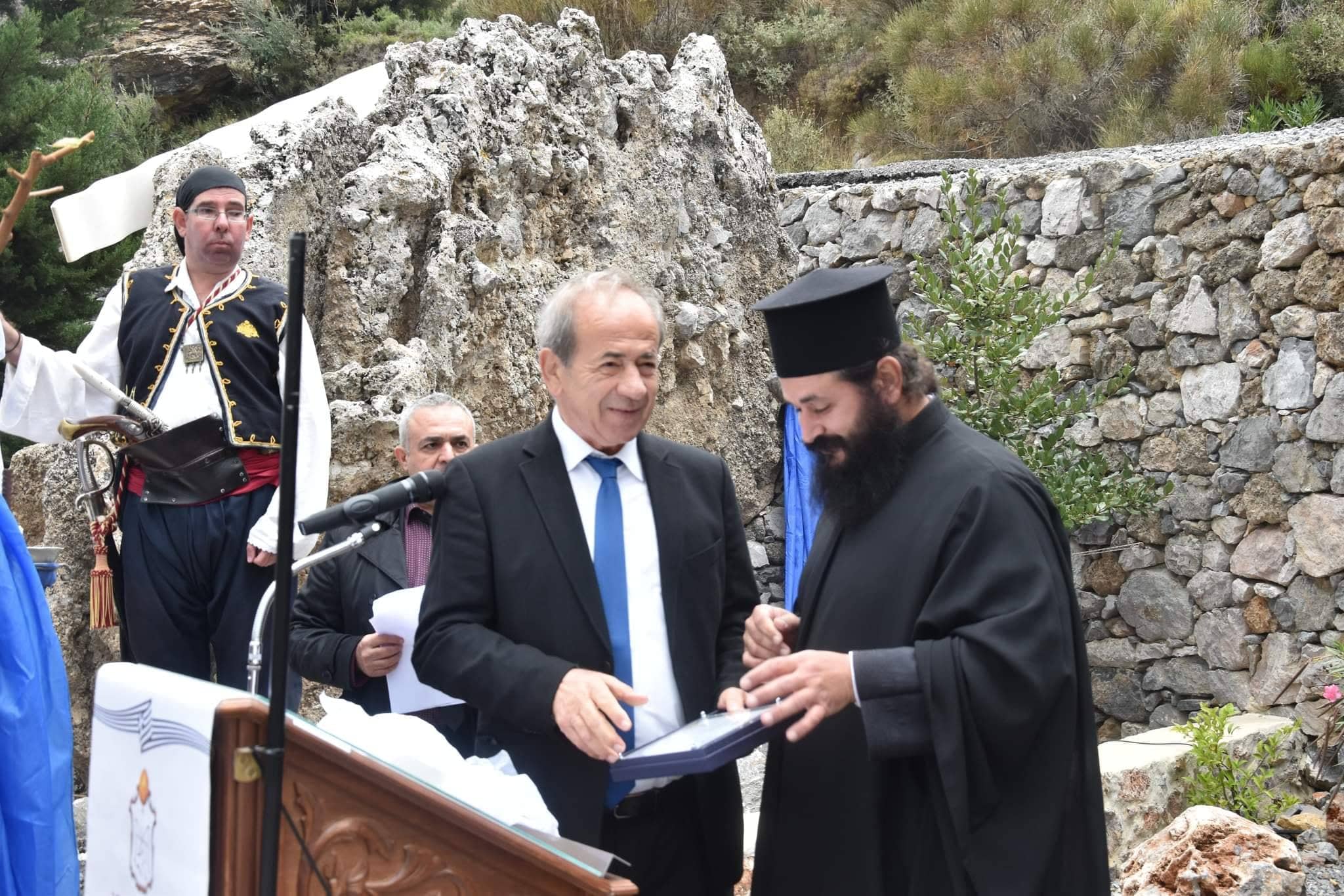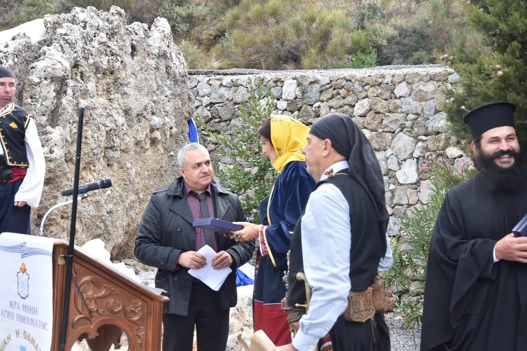 Στο χαιρετισμό του ο δήμαρχος Ανατολικής Μάνης κ.Πέτρος Ανδρεάκος ανέφερε τους κοινούς αγώνες Κρητικών και Μανιατών,τους ιστορικούς δεσμούς αλλά και τονσημαντικό ιστορικό ρόλο της Μονής του Αγίου Πνεύματος Κισσού και τις άοκνες προσπάθειες του Ηγουμένου π. Βαρθολομαίου και των κατοίκων του Κισσού για την ανάδειξη του μοναστηριού.
