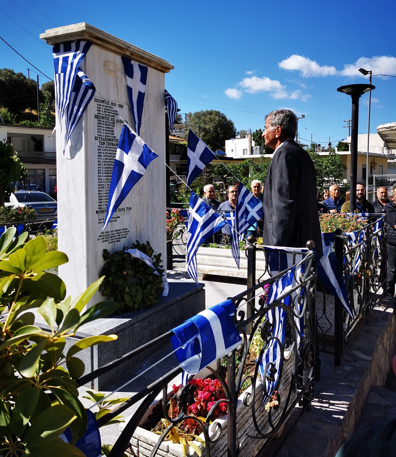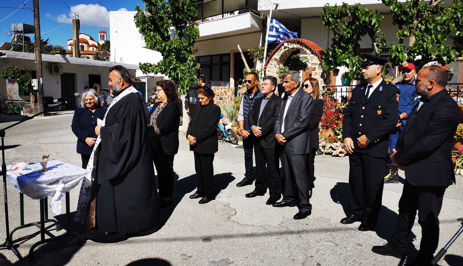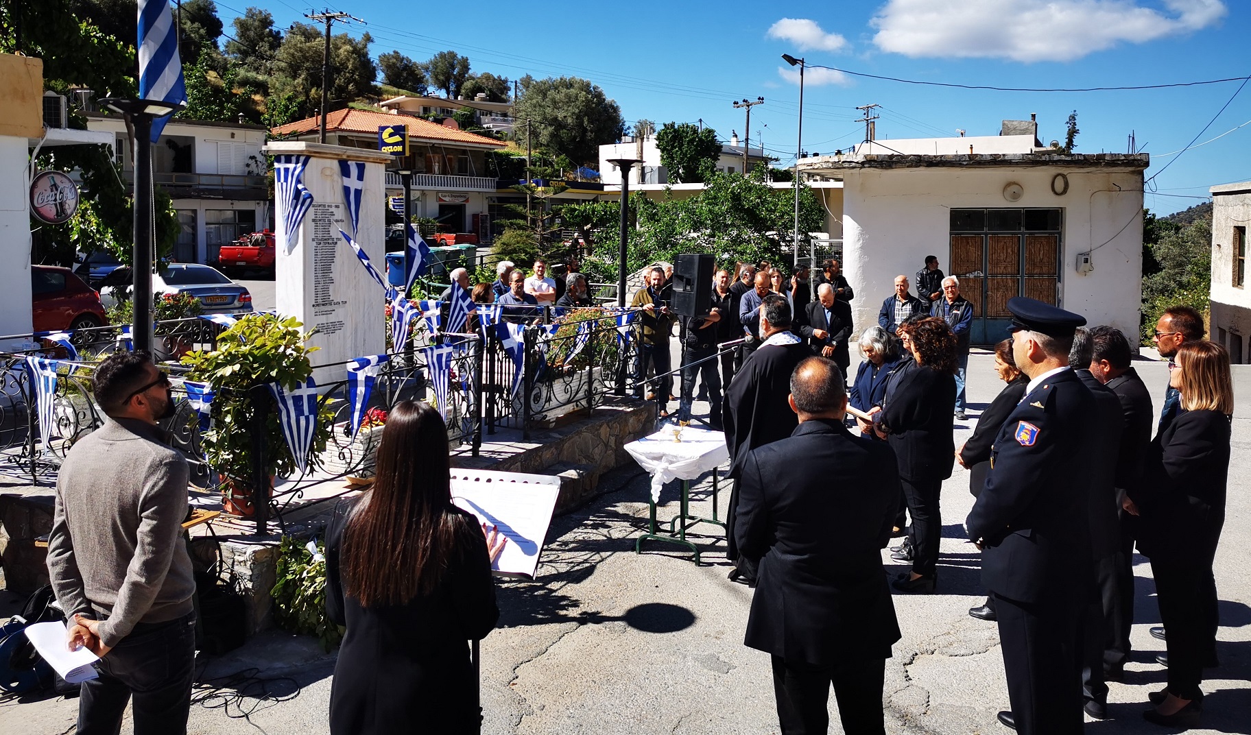 Με την ολοκλήρωση της καθιερωμένης Θείας Λειτουργίας στον Ι. Ν. Αγ. Κωνσταντίνου & Ελένης, κάτοικοι και επίσημοι προσκεκλημένοι μετέβησαν στο χώρο του Μνημείου Πεσόντων