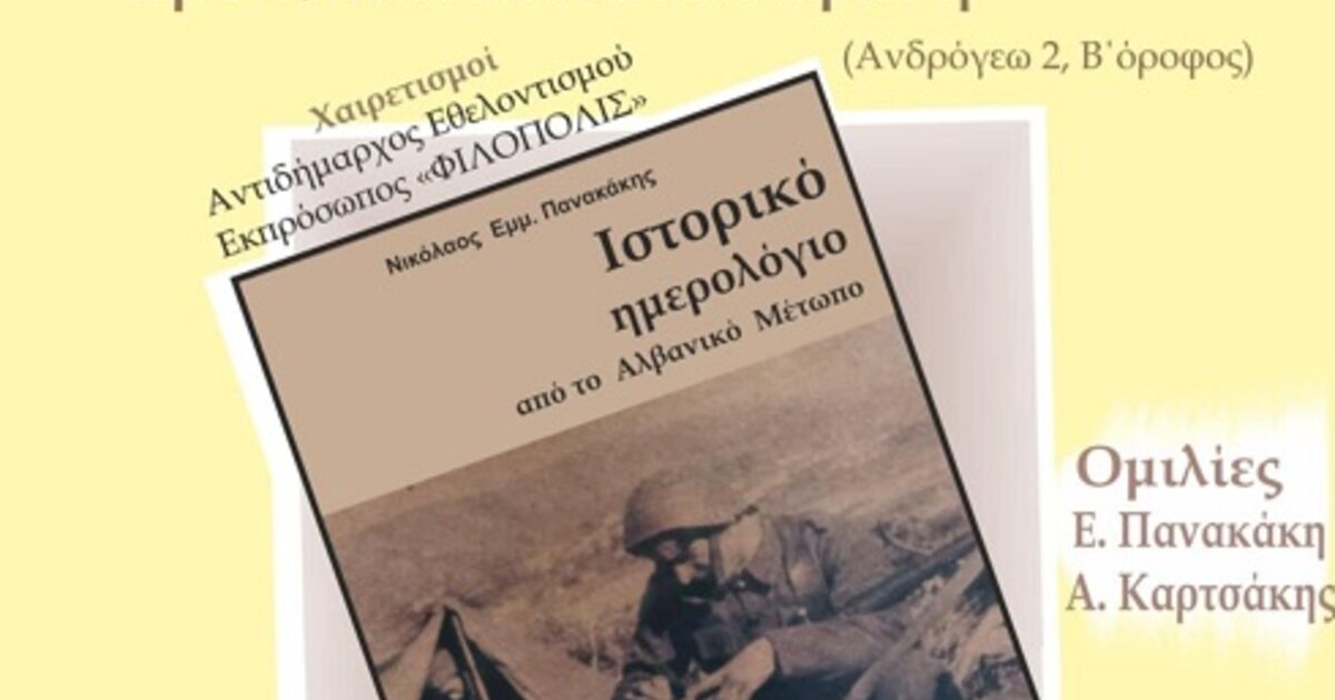 Εκδήλωση τιμής και μνήμης για τους αφανείς ήρωες του Αλβανικού Μετώπου 1940 διοργανώνει η Αντιδημαρχία Εθελοντισμού του Δήμου Ηρακλείου σε συνεργασία με την Εθελοντική Ομάδα ΦΙΛΟΠΟΛΙΣ την Τετάρτη 23 Οκτωβρίου στις 7 το απόγευμα στην αίθουσα «Μανόλη Καρέλλη» στην Ανδρόγεω.