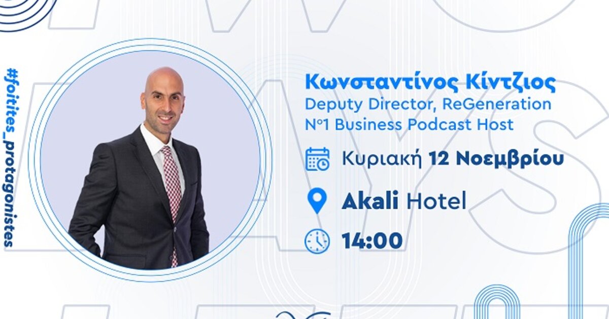 "Στην εκδήλωση θα καλωσορίσουμε τον Κωνσταντίνο Κίντζιο, Deputy Director του ReGeneration - το μεγαλύτερο πρόγραμμα εκπαίδευσης και απασχόλησης για νέες και νέους πτυχιούχους στην Ελλάδα και παρουσιαστής του No1 Business Podcast (Θα Σας Ειδοποιήσουμε) @notifyshow.
