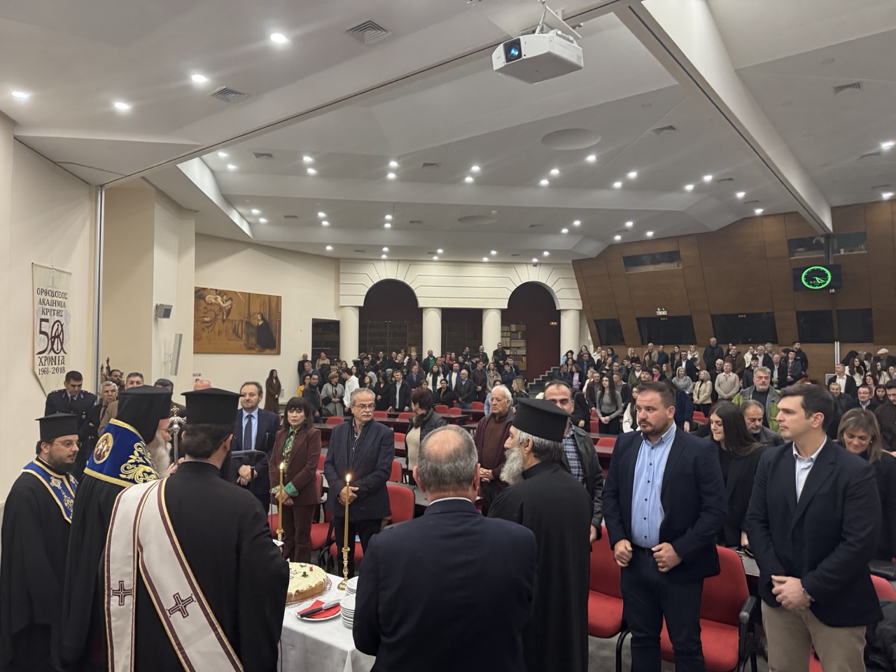 Πραγματοποιήθηκε, τη Δευτέρα 6 Ιανουαρίου 2025, στην Ορθόδοξη Ακαδημία Κρήτης, στο Κολυμπάρι, η καθιερωμένη εκδήλωση υποδοχής του νέου έτους και βράβευσης των πρωτοετών φοιτητών του Δήμου Πλατανιά.