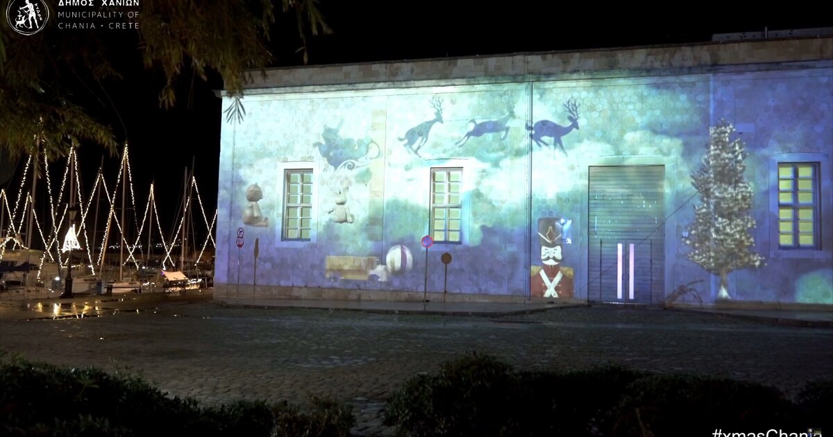 Στους εξωτερικούς τοίχους του Θεάτρου «Μίκης Θεοδωράκης», ο Δήμος Χανίων με μέριμνα της Κοινωφελούς του Επιχείρησης Πολιτισμού και Περιβάλλοντος (Κ.Ε.Π.ΠΕ.ΔΗ.Χ.-Κ.Α.Μ.), δημιούργησε ένα παραμυθένιο εορταστικό σκηνικό με τρισδιάτατες προβολές (3D projection mapping), για μικρούς και μεγάλους.