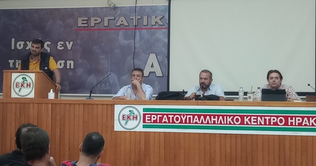 Σε κατάμεστη αίθουσα πραγματοποιήθηκε στις 16/5/2022 η εκλογοαπολογιστική Συνέλευση τους Σωματείου Χειριστών Μηχανημάτων Έργου Νομού Ηρακλείου, παρουσία του Προέδρου του Εργατικού Κέντρου Ηρακλείου, Στέλιου Βοργια, καθώς και μελών της Διοίκησης του ΕΚΗ, αλλά και του Προέδρου της Πανελλήνιας Ομοσπονδίας Χειριστών Μηχανημάτων Έργου, Νίκου Ηλιόπουλου.