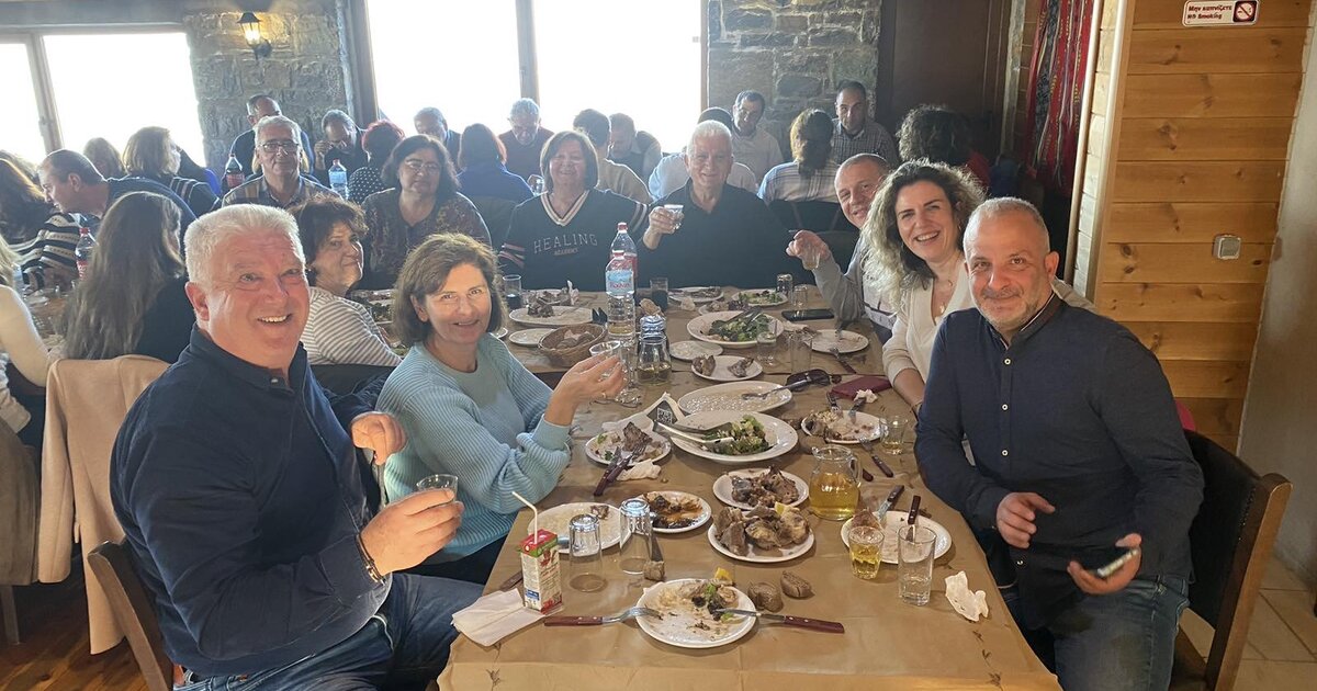 Μετά από τις ωραίες εντυπώσεις που αποκομίσαμε από τις κρυμμένες ομορφιές του τόπου μας, όπου η φύση μπορεί να συμβιώσει με τον άνθρωπο όταν αυτός την σέβεται και την προστατεύει, καταλήξαμε σε ταβέρνα με ορεινό καταφύγιο στις παρειές του Ψηλορείτη κοντά στα Λειβάδια με πλουσιοπάροχο φαγητό και θέα που κόβει την ανάσα . Με συζήτηση και καλή διάθεση κόψαμε την πίτα του Συλλόγου μας, με την ευχή να έχουμε υγεία ,να είμαστε αισιόδοξοι και δημιουργικοί και να ανταμώνουμε σε ωραίες δραστηριότητες .