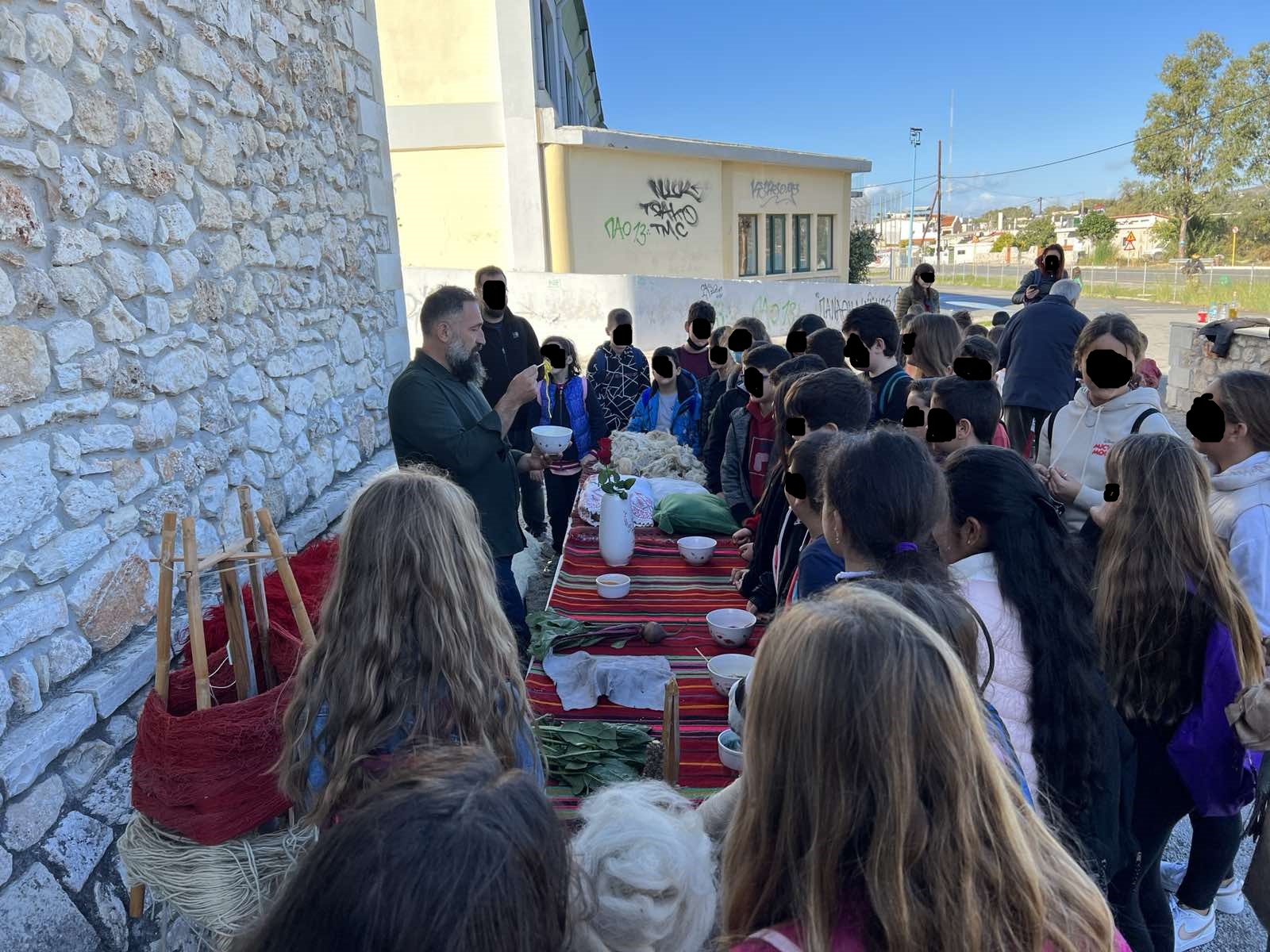 Κατά τη διάρκεια των Εκπαιδευτικών Επισκέψεων (Τρίτη 22 και Παρασκευή 25 Νοεμβρίου 2022) μαθητές και εκπαιδευτικοί από τέσσερις σχολικές μονάδες, και συγκεκριμένα από τα Νηπιαγωγεία Βαρυπέτρου και Αλικιανού, την Έκτη Τάξη του Δημοτικού Σχολείου Κολυμβαρίου, καθώς και την Τρίτη και Τετάρτη Τάξη του 3ου Δημοτικού Σχολείου Κισάμου, παρακολούθησαν την παραδοσιακή διαδικασία δημιουργίας και κατεργασίας νήματος από μαλλί προβάτων ως βιώσιμου κλωστοϋφαντουργικού προϊόντος από τον Πρόεδρο του Πολιτιστικού Συλλόγου κ. Φραγκιαδάκη Ηλία.