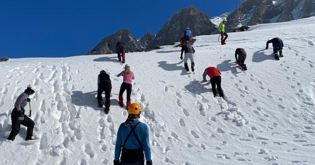θα πρέπει να έχουν όλοι ημιάκαμπτες ή τελείως άκαμπτες μπότες και να έχουν ρυθμίσει τα κραμπόνς τους ώστε να κάνουν στις μπότες τους.