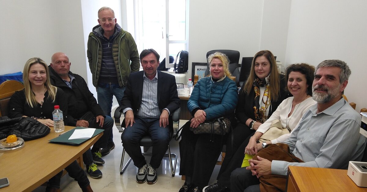 Οι εκπαιδευτικοί Ευστράτιος Γιάνναρης, Αλεξάνδρα Καραδήμου, Κεφαλάκης Στέλιος, Ζαχαρίας Ρηγάκης, Ευαγγελία Χατζάκη, Γκιουρέμου Κάλια και η Αριστέα Μαυρογιάννη επισκέφθηκαν τον Γιώργο Αλεξάκη, στο Γραφείο του στην Περιφέρεια Κρήτης, και όντας ο άνθρωπος που έχει εκπροσωπήσει το νησί στην Ευρώπη αλλά και τον κόσμο, συζήτησαν μαζί του θέματα εκπαιδευτικής εξωστρέφειας αλλά και τη σημασία της εμπειρίας που αποκομίζουν οι μαθητές από τα ταξίδια σε άλλες χώρες.