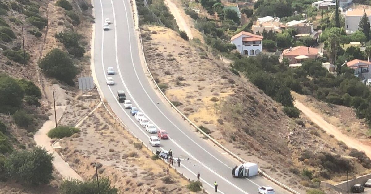 Τροχαίο ατύχημα σημειώθηκε νωρίς το απόγευμα της Παρασκευής στον κόμβο Μοχού. Ένα βαν συγκρούστηκε με ένα αυτοκίνητο, εξετράπη της πορείας του και ανατράπηκε.