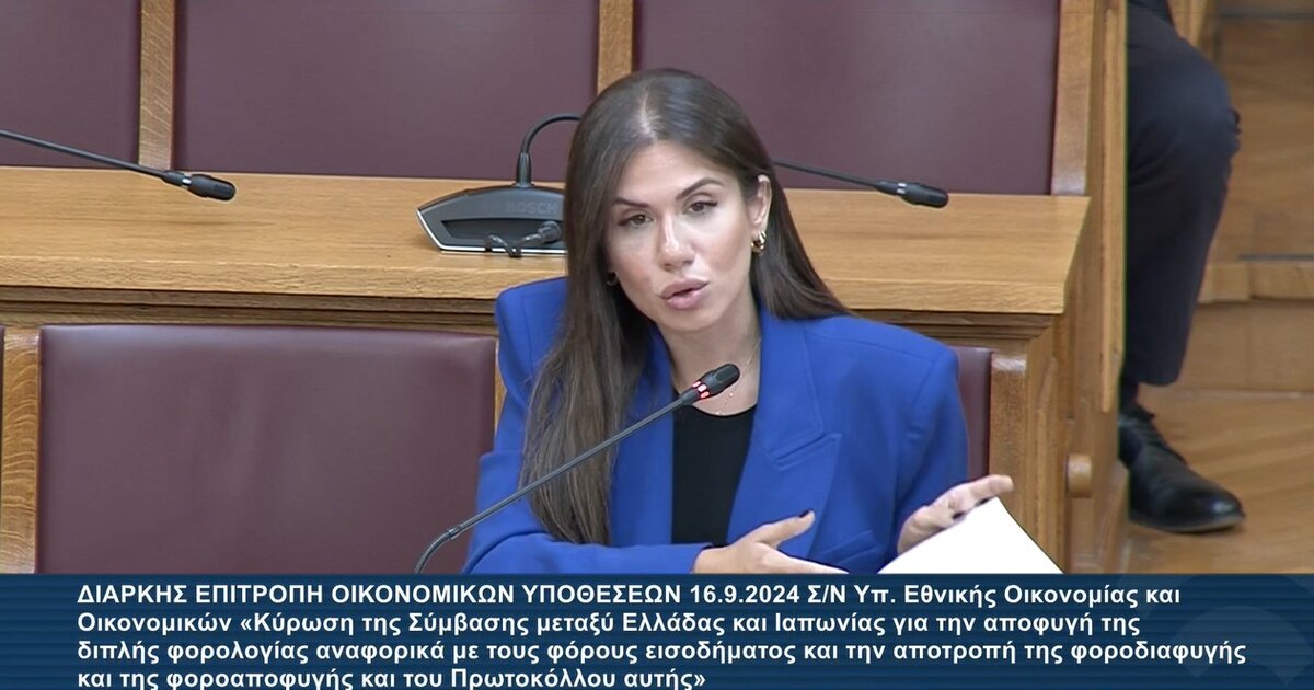 Αυτό τόνισε η βουλευτής Ηρακλείου ΠΑΣΟΚ, Ελένη Βατσινά, κατά τη συζήτηση το μεσημέρι της Δευτέρας (16.09.2024) στην Επιτροπή Οικονομικών, της σύμβασης της Ελλάδας με την Ιαπωνία «για την αποφυγή της διπλής φορολογίας αναφορικά με τους φόρους εισοδήματος και την αποτροπή της φοροδιαφυγής και της φοροαποφυγής», η οποία μετά την επεξεργασία από την αρμόδια κοινοβουλευτική επιτροπή, θα συζητηθεί και θα τεθεί προς κύρωση από το ελληνικό Κοινοβούλιο, την Τετάρτη 18 Σεπτεμβρίου.
