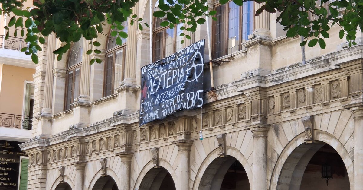 Υπενθυμίζεται μάλιστα ότι στο Δημαρχείο Ηρακλείου είχε αναρτηθεί και πανό με σύνθημα "λευτεριά στους αγωνιστές".