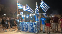 Μόνο που το γαλάζιο κυριαρχούσε στο οπτικό πεδίο, με σημαίες πανό κι άλλα αναμνηστικά και διακριτικά της “επίσημης αγαπημένης” που πωλούνταν στους υπαίθριους χώρους.