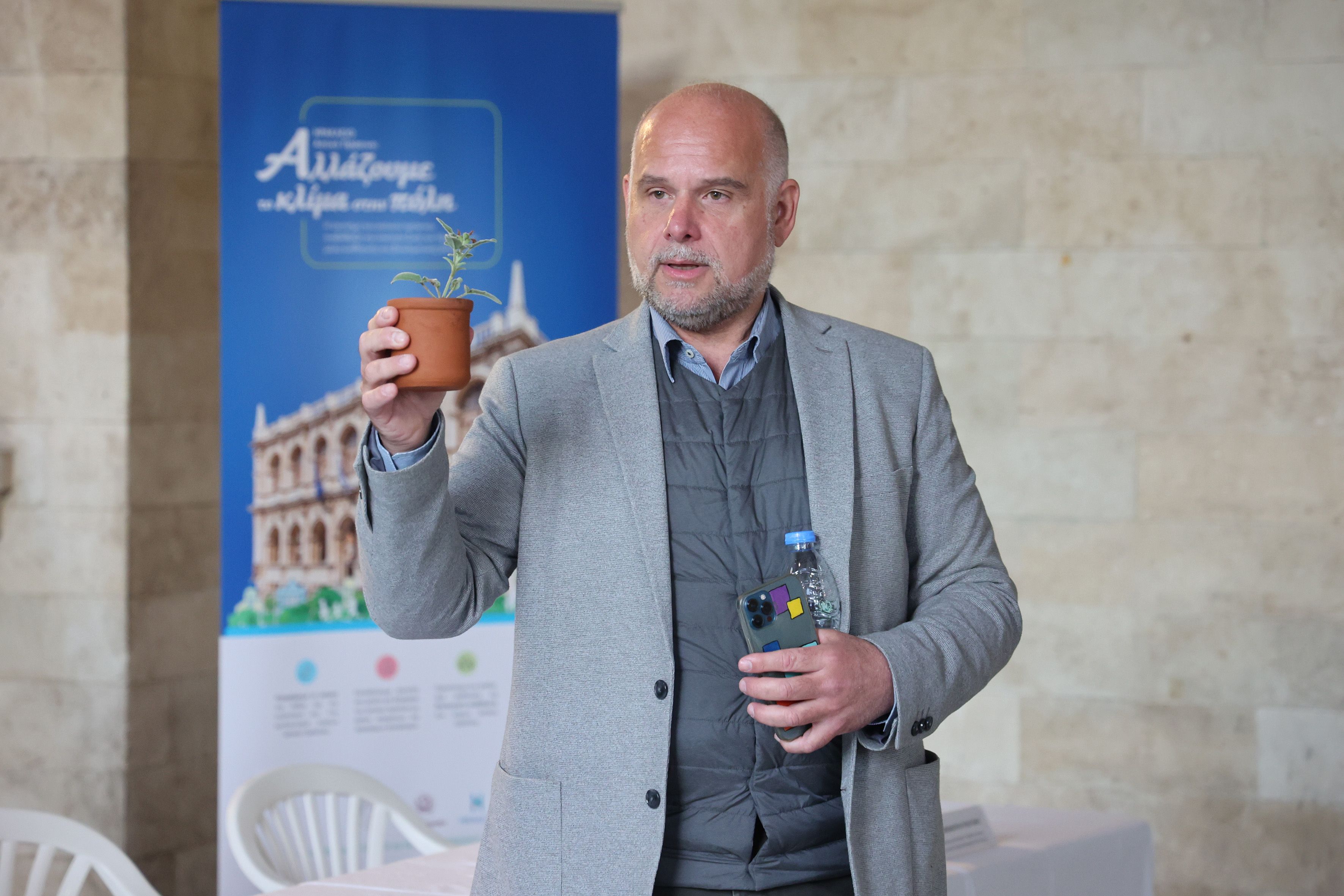 Οι εκδηλώσεις του έργου «Ηράκλειο Αστικό Πράσινο: Αλλάζουμε το κλίμα στην πόλη» πραγματοποιήθηκαν στο Περιστύλιο της Λότζια. Την εκδήλωση της πρώτης ημέρας 4 Απριλίου για την Αστική Γεωργία χαιρέτισαν ο Αντιπρύτανης Οικονομικών Προγραμματισμού & Ανάπτυξης του ΕΛΜΕΠΑ Δρ Νικόλαος Βιδάκης, ο Αντιδήμαρχος Τεχνικών Έργων, Καθημερινότητας & Πρασίνου του Δήμου Ηρακλείου, Γιάννης Ανασταστάκης και η Αντιπεριφερειάρχης στον Πρωτογενή Τομέα Περιφέρειας Κρήτης, Ειρήνη Xουδετσανάκη – Γιακουμάκη. Εισηγητές στην ημερίδα ήταν η Δρ Ελένη Γουμενάκη, Καθηγήτρια ΕΛΜΕΠΑ, ο Δρ Παναγιώτης Νεκτάριος, Καθηγητής, Κοσμήτορας Σχολής Γεωπονικών Επιστημών, ΕΛΜΕΠΑ και ο Δρ Εμμανουήλ Ροδιτάκης, Αναπληρωτής Καθηγητής, Πρόεδρος Τμήματος Γεωπονίας ΕΛΜΕΠΑ.