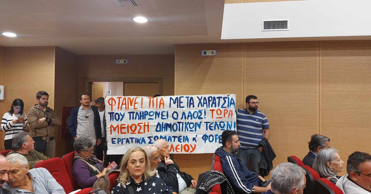 Εν μέσω έντασης, κινητοποίησης κατά της ενδεχόμενης αύξησης των δημοτικών τελών στο Δήμο Ηρακλείου και με την απουσία της Μαρίας Καναβάκη και του Κώστα Βαρδαβά, πραγματοποιήθηκε το απόγευμα της Δευτέρας 13.11.23, η συνεδρίαση του Δημοτικού Συμβουλίου Ηρακλείου, με το θέμα τελικά να αποσύρεται μετά τις οξύτατες αντιδράσεις τόσο για το κατά πόσο νομιμοποιείται η απερχόμενη δημοτική αρχή να ψηφίσει κάτι κρίσιμο μεν, όχι επείγον δε, αλλά και λόγω της ουσίας της εισήγησης που περιλαμβάνει διψήφιο ποσοστό αύξησης των τελών.