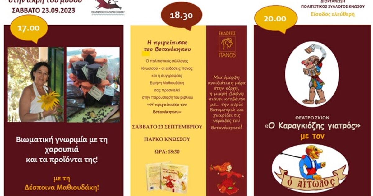 "Στην άκρη του Μύθου", συνεχίζονται οι δράσεις στο Πάρκο Κνωσού, το ερχόμενο Σάββατο 23.09.2023, με ένα υπέροχο απόγευμα για παιδιά και όχι μόνο!