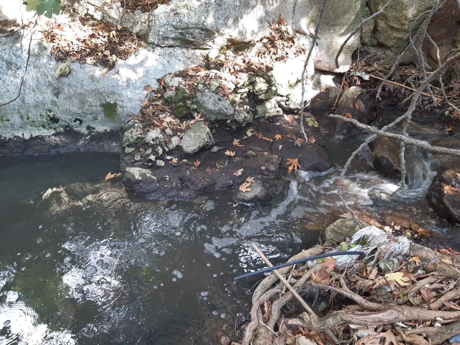 Μαύρα - κυριολεκτικά - τα πράγματα για το φαράγγι της Αγίας Ειρήνης στα Σπήλια, που έχει ρυπανθεί από κατσίγαρο και λύματα. Από το βιολογικό καθαρισμό ως την Αγία Ειρήνη, άγνωστος ασυνείδητος προκάλεσε σοβαρή μόλυνση - ένα πραγματικό περιβαλλοντικό έγκλημα - που θα μπορούσε να αποφευχθεί αν ο υπαίτιος επέλεγε τη λύση της απόρριψης με βυτίο, που θα του κόστιζε 200 ευρώ.