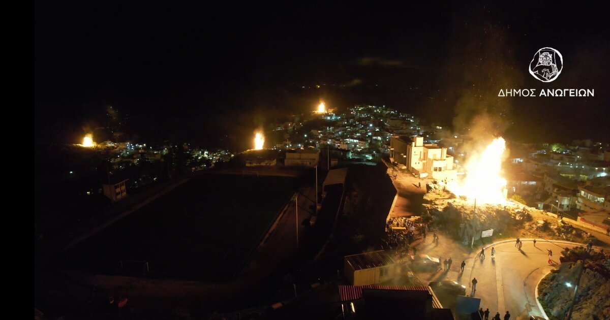 Όλος ο τόπος καταυγάζει από λυτρωτικό Αναστάσιμο Φως. Στ’ Ανώγεια οι ουρανομήκεις φλόγες των ορφανών δηλώνουν διαχρονικά την ελευθερία πνεύματος της κοινωνίας.