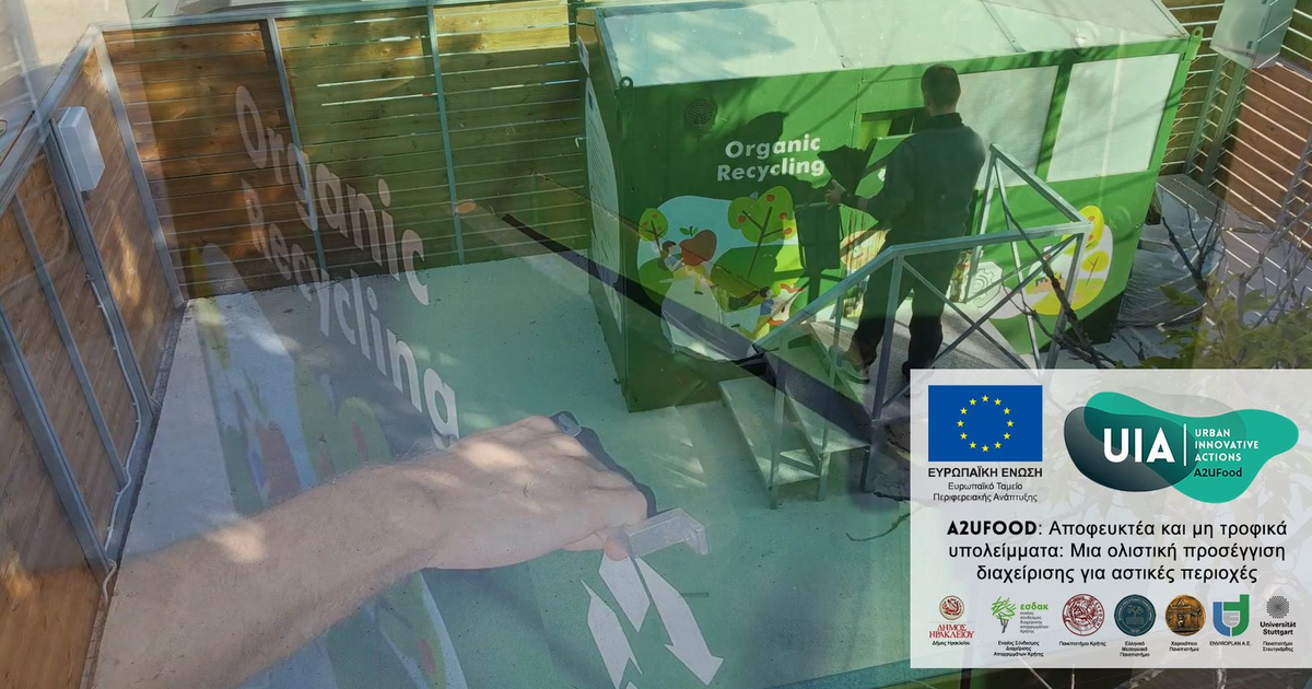 Στα τέλη του Φεβρουαρίου 2022 ολοκληρώνεται το Ευρωπαϊκό Έργο A2UFood «Αποφευκτέα και μη τροφικά υπολείμματα: Μια ολιστική προσέγγιση διαχείρισης για αστικές περιοχές». Αντικείμενο του έργου, όπως χαρακτηριστικά αναδεικνύει ο τίτλος του, ήταν η ένταξη εναλλακτικών – και καινοτόμων – συστημάτων διαχείρισης των υπολειμμάτων τροφίμων στο αστικό περιβάλλον και εν προκειμένω, στην πόλη του Ηρακλείου.