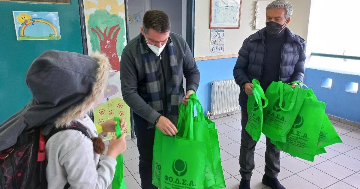 Στους μαθητές δόθηκε μία τσάντα από τον ΦΟΔΣΑ Βόρειας Πεδιάδας με ενημερωτικό υλικό για την ανακύκλωση και αναμνηστικά δώρα.