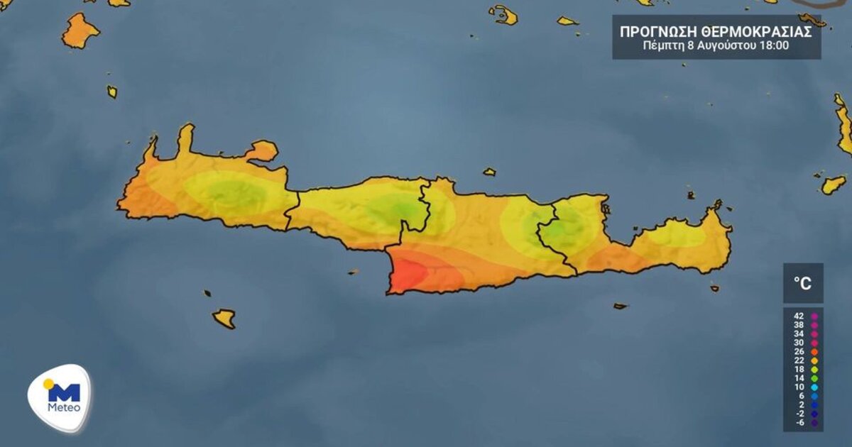 Η θερμοκρασία θα κυμανθεί από 23 έως 33 με 34, τοπικά στα νότια έως 36 βαθμούς Κελσίου.