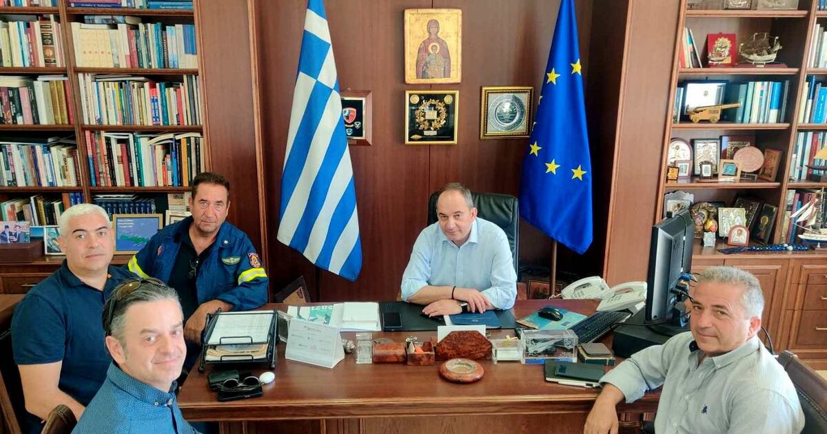 «Στις 25 Ιουνίου 2022 αντιπροσωπεία του Δ.Σ της Ένωσης Υπαλλήλων Πυροσβεστικού Σώματος Περιφέρειας Κρήτης, αποτελούμενοι από τον πρόεδρο Αντωνακάκη Μανώλη, τον αντιπρόεδρο Ατσαλάκη Στερεό και τον Αντιπρόσωπο σύνεδρο της Π.Ο.Ε.Υ.Π.Σ Φουσκολαγουδάκη Γεώργιο, πραγματοποίησε συνάντηση με τον Υπουργό Ναυτιλίας και Νησιωτικής Πολιτικής κ. Πλακιωτάκη Ιωάννη.