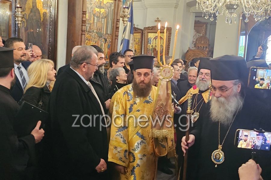 Σας καλωσορίζουμε! Η πάνδημη υποδοχή που σας επιφυλάσσει σήμερα ο λαός σε αυτή την πλατεία, λίγα λεπτά πριν κατευθυνθούμε όλοι μαζί, εν πομπή, προς τον Μητροπολιτικό μας Ναό των Εισοδίων της Θεοτόκου, μοιάζει πολύ με έναν ιερό, πνευματικό γάμο. Είναι ακριβώς εκείνη η στιγμή που η «νύμφη», η πόλη και η κοινωνία των Χανίων, βγαίνει στους δρόμους και τις πλατείες της, στολισμένη με περηφάνια και ελπίδα, για να προϋπαντήσει τον πνευματικό της νυμφίο.