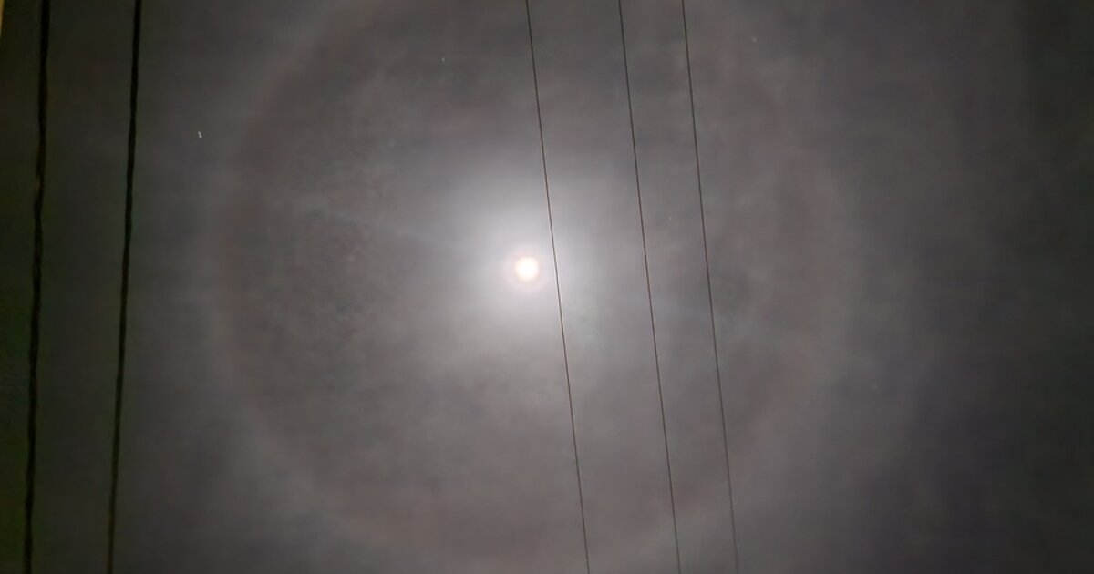"Το απίστευτο σεληνιακό φωτοστέφανο πάνω από την Κρήτη. Το φαινόμενο προκαλείται από τη διάθλαση του σεληνιακού φωτός μέσα από εξαγωνικούς κρυστάλλους πάγου ψηλά στην ατμόσφαιρα.