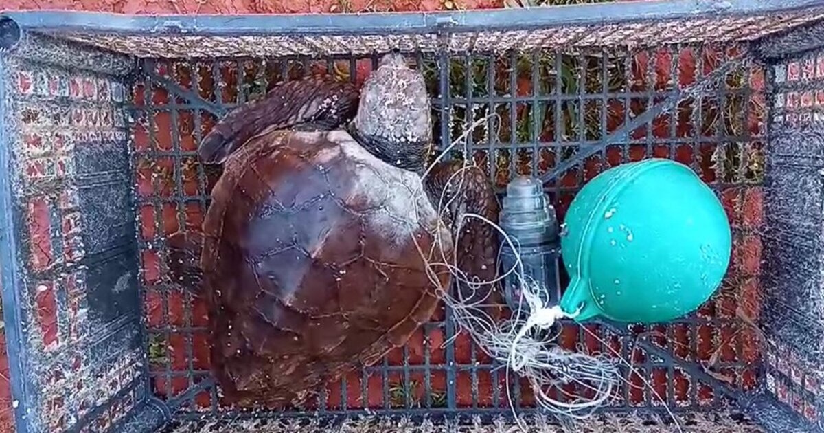 Μια μικρή χελώνα Caretta caretta βρέθηκε στις 4/3/2021 εκβρασμένη στην παραλία Παχιά Άμμος, Σταυρός Ακρωτηρίου του Δήμου Χανίων, Βόρεια ακτή του Ν. Χανίων από τον κ. Ιούλιο Γκλαμπεδάκη, παγιδευμένη σε πετονιά παραγαδιού με πλωτήρα και φωτοσημαντήρα, γεγονός που δεν της επέτρεπε να κολυμπήσει. Ήταν αφυδατωμένη, αδύναμη και είχε καταπιεί αγκίστρι. Μετά την ελευθέρωσή της από τα υλικά που την παγίδευαν και κατόπιν συνεννοήσεως με τον ΑΡΧΕΛΩΝ, μεταφέρθηκε στο Ενυδρείο Κρήτης για περίθαλψη, όπου και επιβεβαιώθηκε από τον συνεργαζόμενο κτηνίατρο (Δρ Π. Νικηφοράκη) η ύπαρξη του αγκιστριού.