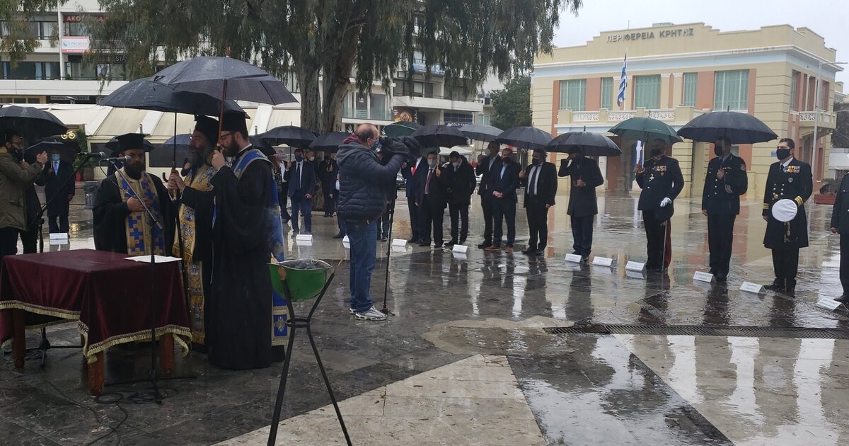 2)Κατάθεση Στεφάνων από: την Αντιπεριφερειάρχη Παιδείας, Δια Βίου Μάθησης, Απασχόλησης και Νέας Γενιάς, την Αντιδήμαρχο Παιδείας, Δια Βίου Μάθησης και Νέας Γενιάς Δήμου Ηρακλείου, τον Περιφερειακό Διευθυντή Εκπαίδευσης Κρήτης, τους Διευθυντές της Α/θμιας και Β/θμιας Εκπαίδευσης, τους Φοιτητές του Πανεπιστημίου Κρήτης, τους φοιτητές του Ελληνικού Μεσογειακού Πανεπιστημίου, τους φοιτητές της Πατριαρχικής Ανώτατης Εκκλησιαστικής Ακαδημίας Κρήτης, τους μαθητές Α/θμιας και Β/θμιας Εκπαίδευσης, τους Προσκόπους και τους Οδηγούς.