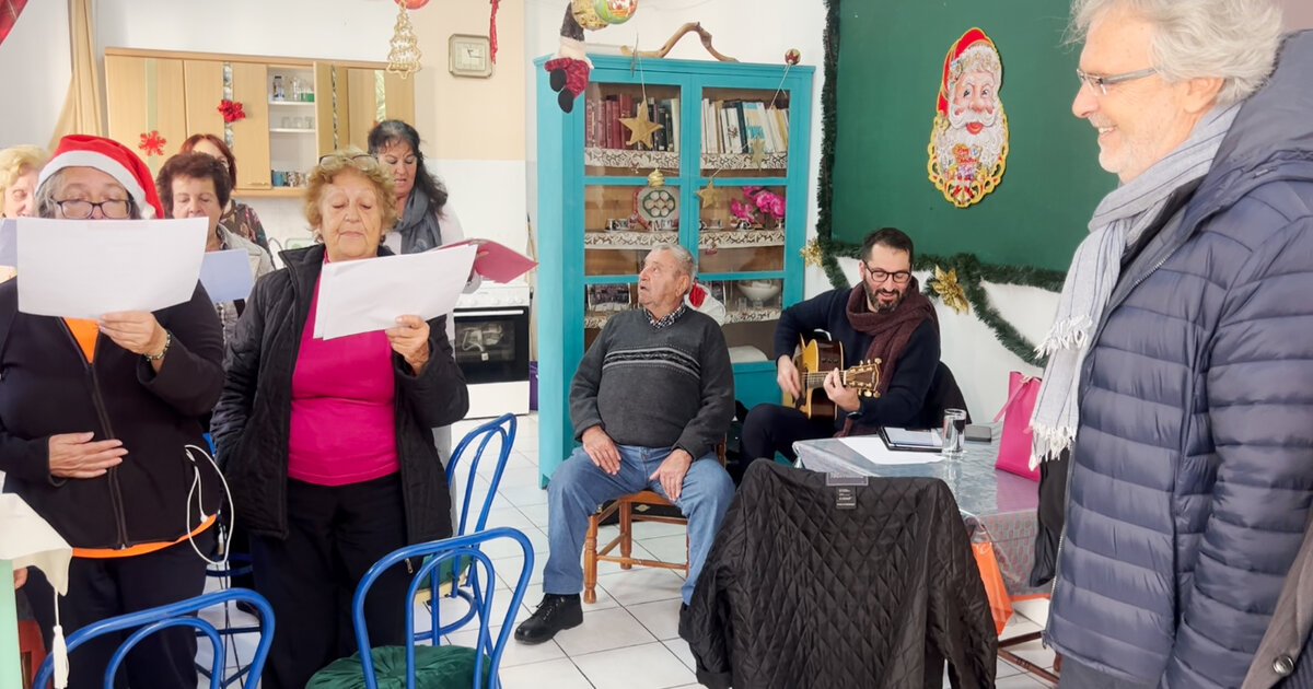 Με μεγάλα σχέδια για τη νέα χρονιά, πολλές, θερμές ευχές και παραδοσιακές Χριστουγεννιάτικες μελωδίες οι ωφελούμενοι του ΚΑΠΗ υποδέχτηκαν σήμερα το πρωί τον Δήμαρχο Σητείας κ Γιώργο Ζερβάκη και την Αντιδήμαρχο Πολιτισμού κα Βέρα Περράκη στο χώρο τους.