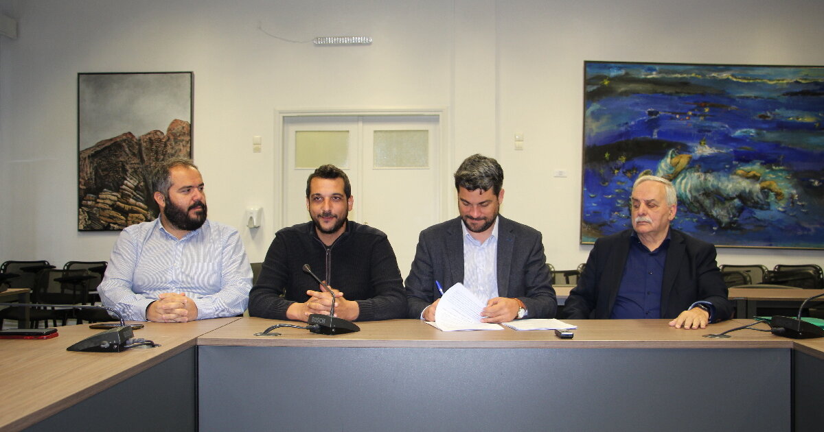 Υπέγραψε τη σύμβαση παραχώρησης του κτιρίου του πρ. ΙΚΑ από τον ΕΦΚΑ στον Δήμο Χανίων, ο Δήμαρχος, Παναγιώτης Σημανδηράκης στην Αίθουσα Συνεδριάσεων του Δημοτικού Συμβουλίου Χανίων, παρουσία του Προέδρου του Δημοτικού Συμβουλίου, Ευτύχη Δαμιανάκη και των Αντιδημάρχων, Οικονομικών, Τάσου Αλόγλου & Τεχνικών Έργων, Μιχάλη Καλογριδάκη.
