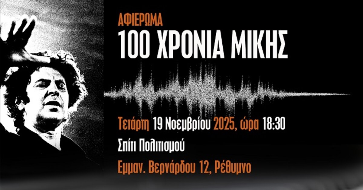 Η εκδήλωση θα πραγματοποιηθεί στο «Σπίτι Πολιτισμού», στις 19 Νοεμβρίου 2025, στις 18.30 στο Ρέθυμνο και προσφέρεται δωρεάν σε όλους.