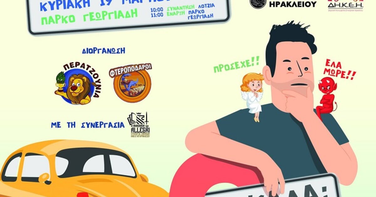 «Περατζούνια» και «Φτεροπόδαροι», υπό την αιγίδα της «Ακαδημίας των Allegri» , και σε συνδιοργάνωση με την Περιφέρεια Κρήτης τον Δήμο Ηρακλείου και την ΔΗΚΕΗ, διοργανώνουν το 12ο παιδικό κυνήγι κρυμμένου θησαυρού της πόλης.