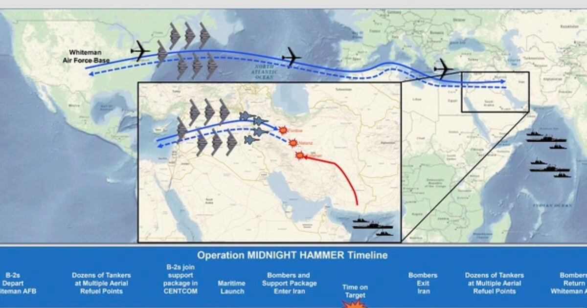 Η επίθεση των ΗΠΑ σε πυρηνικές εγκαταστάσεις του Ιράν με την ονομασία επιχείρηση «Midnight Hammer» ήταν η μεγαλύτερη επίθεση που έχει πραγματοποιηθεί ποτέ από βομβαρδιστικά αεροσκάφη B-2 και η μακρύτερη πτήση που έχουν πραγματοποιήσει τα αεροσκάφη αυτά από το 2001.