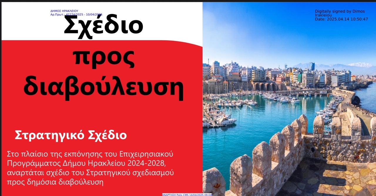 Επιχειρησιακό Πρόγραμμα: Αυτή είναι η "φιλοσοφία" του Δήμου Ηρακλείου για την πολιτική που θα ασκήσει