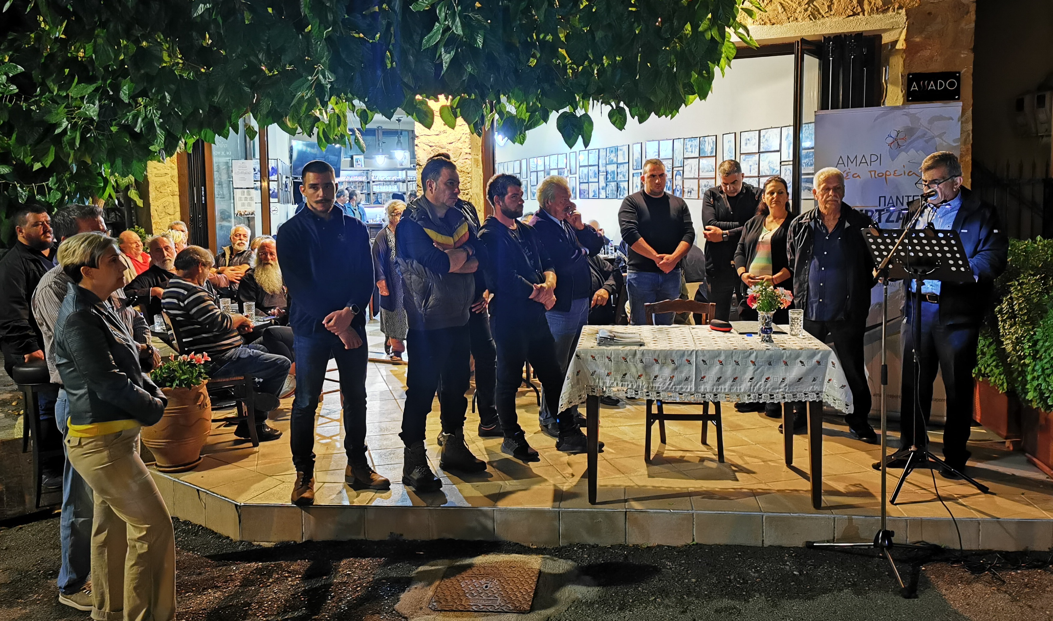 Απευθυνόμενος στον κόσμο που τον υποδέχτηκε, ο επικεφαλής του δημοτικού συνδυασμού «ΑΜΑΡΙ Νέα Πορεία», ανέφερε χαρακτηριστικά: «Έχω αποδείξει, πως η ενασχόλησή μου με τα κοινά του τόπου μας δεν υπήρξε ποτέ αυτοσκοπός. Αντιθέτως, αποτελούσε και αποτελεί ένα πεδίο προσφοράς στον τόπο και τα παιδιά μας. Αυτή είναι η δική μου φιλοσοφία. Αυτή είναι η δική μου «φιλοδοξία». Όχι να διατηρήσω απλά μια καρέκλα, αλλά να είμαι ένας χρήσιμος και αποτελεσματικός Δήμαρχος. Ένας ενεργός δημότης, που προσπαθεί να αφήσει, ένα θετικό αποτύπωμα στον τόπο του».