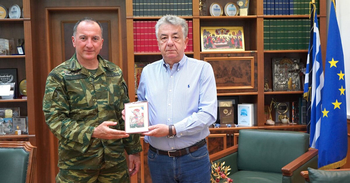 Εθιμοτυπική επίσκεψη πραγματοποίησε σήμερα ο νέος Διοικητής της 5ης Αερομεταφερόμενης Ταξιαρχίας Χανίων, Ταξίαρχος Νικόλαος Κωστάκης, στον Περιφερειάρχη Κρήτης Σταύρο Αρναουτάκη.