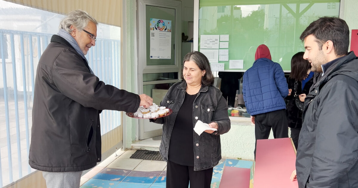 Θερμές ευχές, ζεστές αγκαλιές και γλυκούς πειρασμούς, δημιουργίες του εργαστηρίου ζαχαροπλαστικής τους, κέρασαν σήμερα τον Δήμαρχο Σητείας κ. Γιώργο Ζερβάκη και τον Αντιδήμαρχο Διοικητικών Υπηρεσιών, Νεολαίας & Παιδείας κ Κωστή Λυμπερίου, οι μαθητές και οι εκπαιδευτικοί του ΕΕΕΕΚ Σητείας.