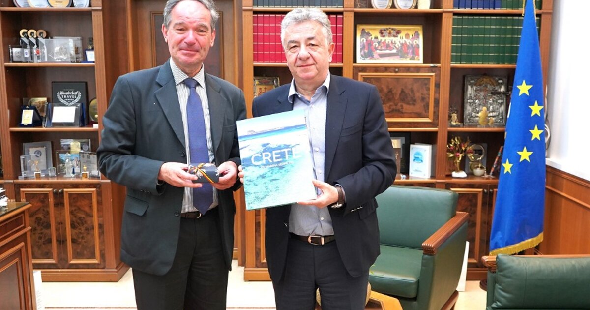 Ο Περιφερειάρχης Κρήτης και ο Βέλγος Πρέσβης συζήτησαν το πλαίσιο προετοιμασίας της επίσκεψης των Πρέσβεων της Ευρωπαϊκής Ένωσης στην Κρήτη τον ερχόμενο Απρίλιο για να παρακολουθήσουν την Λαμπαδηδρομία PARIS 2024.