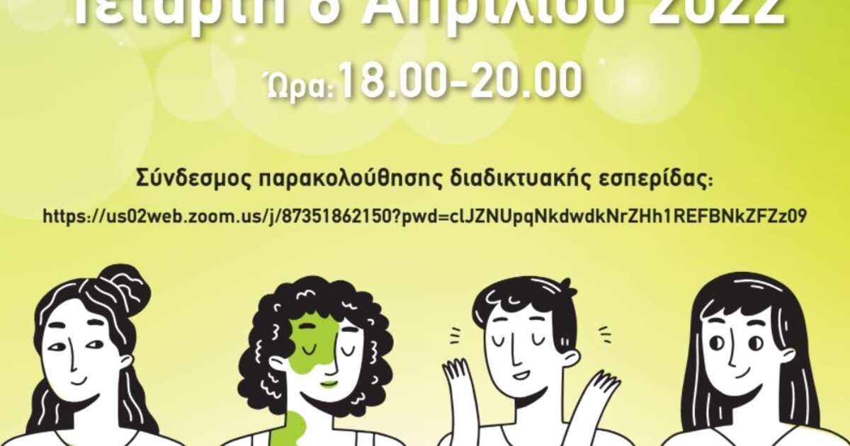 Η Εσπερίδα θα πραγματοποιηθεί την προσεχή Τετάρτη 6 Απριλίου 2022 και θα διεξαχθεί διαδικτυακά κατά το χρονικό διάστημα 18.00 - 20.00 .