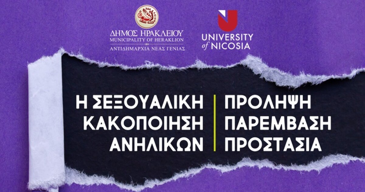 Επιστημονική ημερίδα διοργανώνει η Αντιδημαρχία Νέας Γενιάς του Δήμου Ηρακλείου με θέμα "Σεξουαλική Κακοποίηση Ανηλίκων - Πρόληψη, Παρέμβαση, Προστασία"