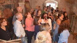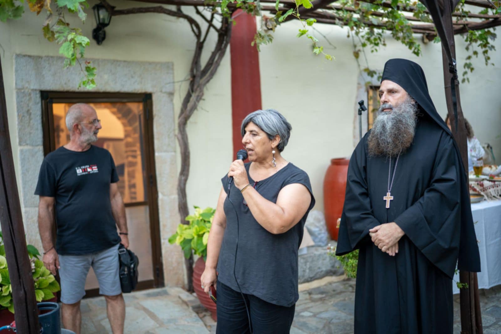 Ακολούθησε ξενάγηση στην Ιερά Μονή Καλλέργη από τον Αρχαιολόγο της Εφορείας Αρχαιοτήτων Ηρακλείου Γεώργιο Κατσαλή, ο οποίος μοιράστηκε γνώσεις για την ιστορία και τη σημασία του Μοναστηριού.