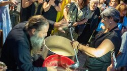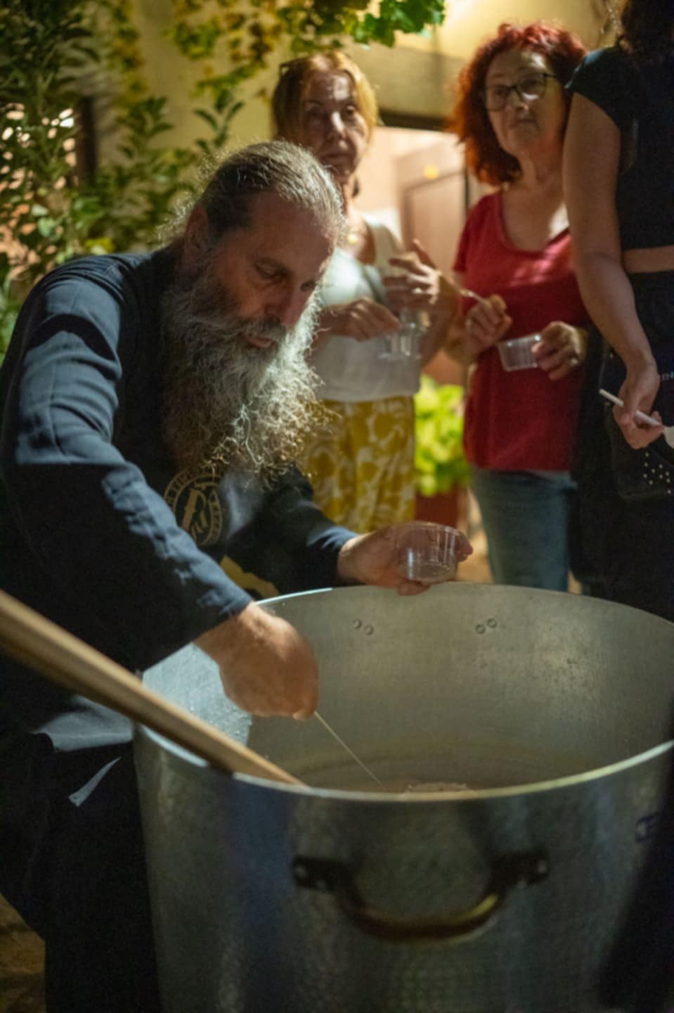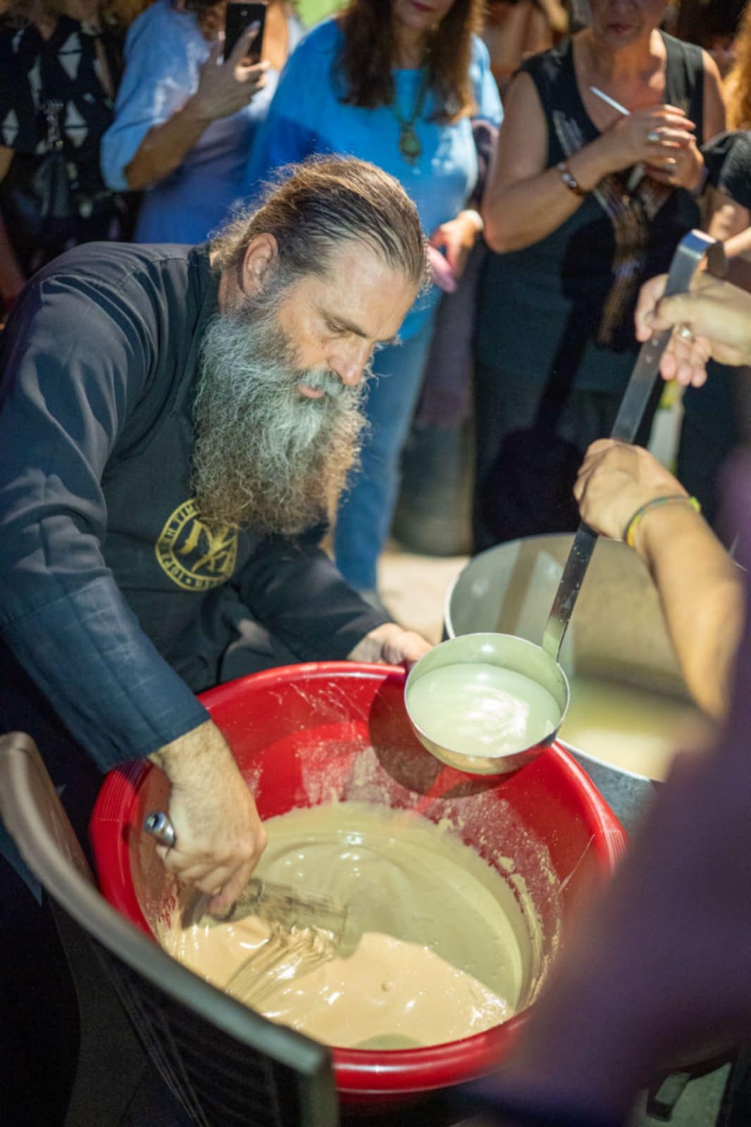 Μετά την ξενάγηση, οι επισκέπτες είχαν την ευκαιρία να απολαύσουν την παρουσίαση μοναστηριακής κουζίνας από το Σύλλογο Φεστιβάλ Κρητικής Κουζίνας, υπό την καθοδήγηση του Ηγουμένου της Μονής Καλλέργη, Σίμωνα Βουτυριάδη.