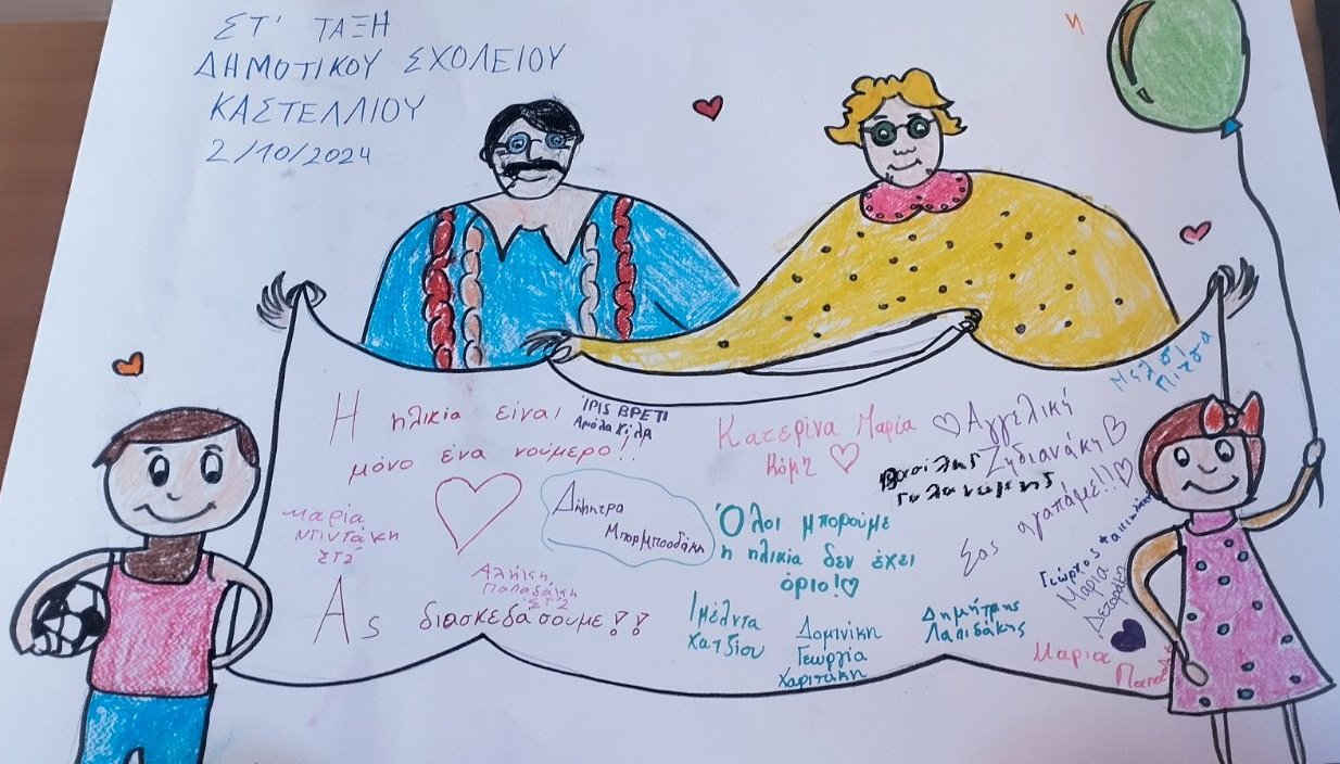 Ιδιαίτερα συγκινητική ήταν η συμμετοχή μαθητών της ΣΤ’ Τάξης του Δημοτικού Σχολείου Καστελλίου, οι οποίοι ζωγράφισαν μαζί με τους ωφελούμενους των κοινωνικών Δομών του Δήμου ενώ παράλληλα τα παιδιά υπό την καθοδήγηση των δασκάλων τους, τους χάρισαν όμορφα λουλούδια αποτίνοντας με αυτό τον τρόπο, τον οφειλόμενο φόρο τιμής στα άτομα της τρίτης ηλικίας Του Δήμου.