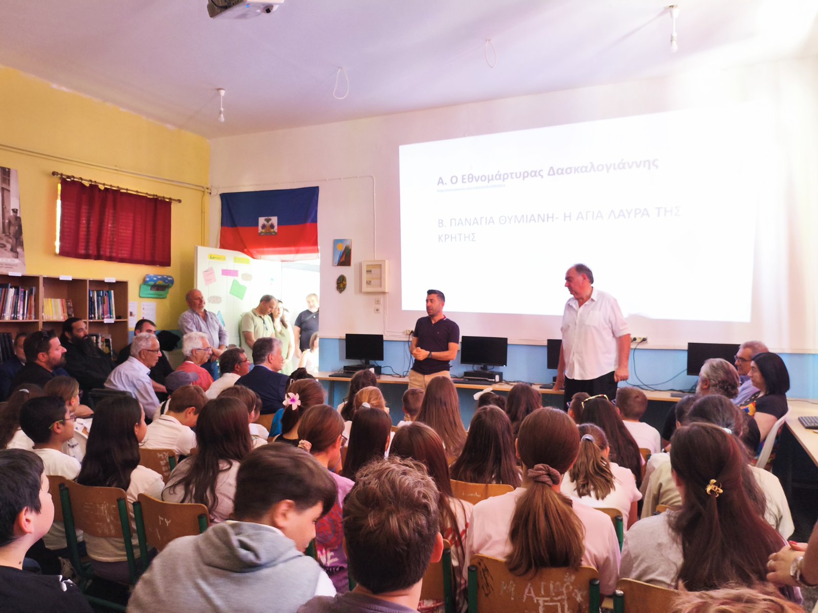 Παράλληλα, είμαστε ιδιαίτερα υπερήφανοι που δύο σχολεία μας, το Δημοτικό Σχολείο Καστελλίου και το Δημοτικό Σχολείο Ανώπολης Σφακίων, ένωσαν τις δυνάμεις τους για να υλοποιήσουν ένα τόσο σημαντικό εκπαιδευτικό πρόγραμμα, εμβαθύνοντας στην ιστορία της Κρήτης και στους αγώνες των προγόνων μας για την ελευθερία. Τα φωτεινά παραδείγματα του Δασκαλογιάννη και του Τρυφίτσου αποτελούν πολύτιμη κληρονομιά, διδάσκοντας μας την αξία της ενότητας και της αποφασιστικότητας. Συγχαίρω θερμά τους μαθητές και τους εκπαιδευτικούς για αυτές τις αξιέπαινες πρωτοβουλίες. Η ευαισθησία και η προσήλωσή σας στην ιστορική αλήθεια αποτελούν πηγή ελπίδας για το μέλλον Οι εκδηλώσεις αναδεικνύουν τη σημασία της διατήρησης της ιστορικής μνήμης και την ανάγκη μετάδοσης των αξιών της ειρήνης, της ελευθερίας και της αξιοπρέπειας, στις νέες γενιές».
