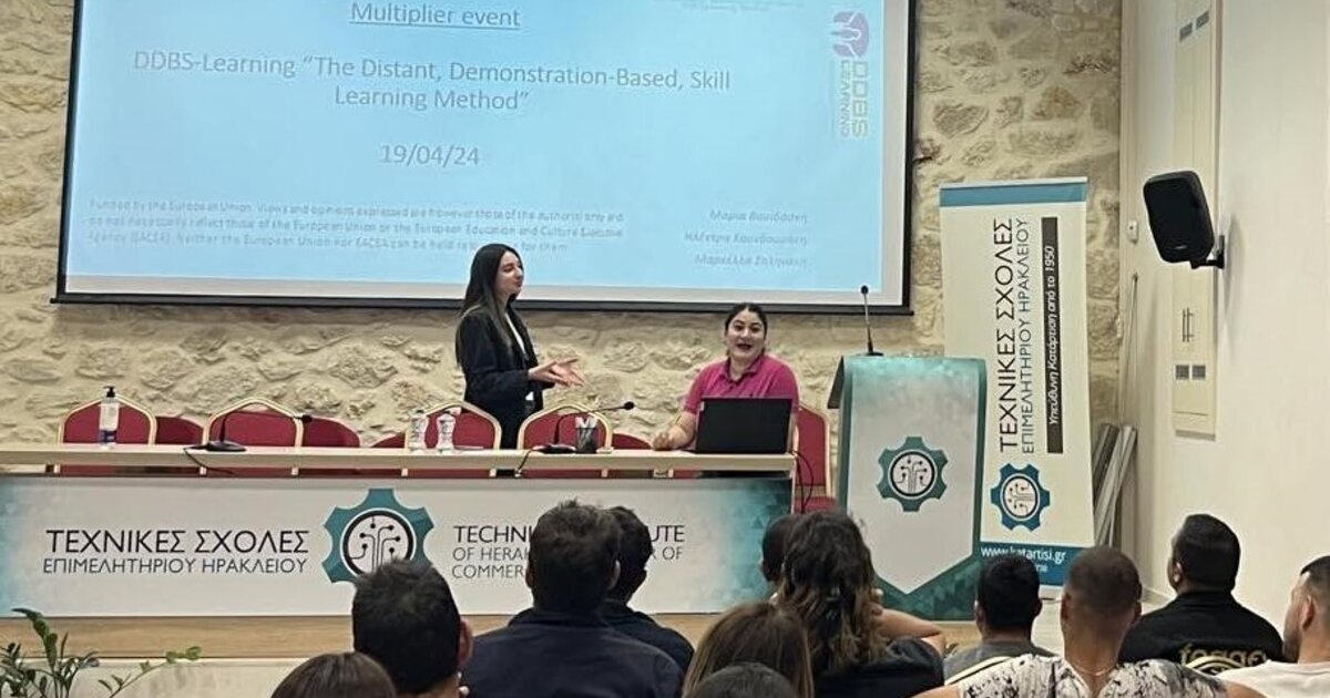 Tο απόγευμα της Παρασκευής, 19 Απριλίου 2024 και ώρα 18:00, οι Τεχνικές Σχολές του Επιμελητηρίου Ηρακλείου πραγματοποίησαν μια ανοιχτή ενημερωτική εκδήλωση (multiplier event) για το ευρωπαϊκό πρόγραμμα με τίτλο "DDBS-Learning" στις εγκαταστάσεις τους στην οδό Ικάρου και Αρχιμήδου 1, στη Νέα Αλικαρνασσό. Η εκδήλωση προσέλκυσε ευρύ κοινό και είχε ως στόχο την ενημέρωση των συμμετεχόντων σχετικά με τα αποτελέσματα του προγράμματος, το οποίο χρηματοδοτήθηκε από την Ευρωπαϊκή Ένωση με αριθμό έργου 2021-1-DE02-KA220-VET-000033120.