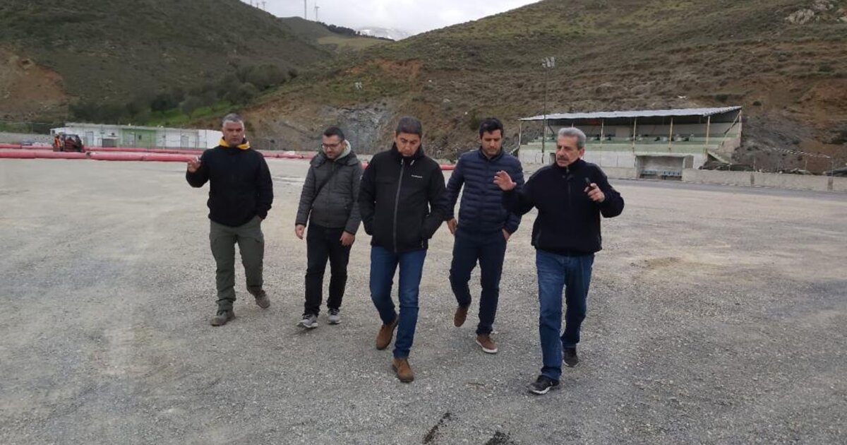 Στη συνέχεια, επισκέφτηκε την έκταση, στην οποία πρόκειται να κατασκευαστεί το Γήπεδο Μπάσκετ, προϋπολογισμού 228.500€, με χρηματοδότηση από το Εθνικό Πρόγραμμα Ανάπτυξης του Υφυπουργείου Αθλητισμού και πόρους του Δήμου. Έχουν ολοκληρωθεί όλες οι απαιτούμενες εργασίες εκσκαφής και τις επόμενες μέρες ξεκινά η υλοποίηση του έργου, με την επίστρωση του ελαστικού τάπητα, την κατασκευή κερκίδας, μήκους 20μ., την τοποθέτηση των μπασκετών, την περίφραξη του χώρου και τον ηλεκτροφωτισμό, ώστε να είναι έτοιμο μέχρι το τέλος του έτους.