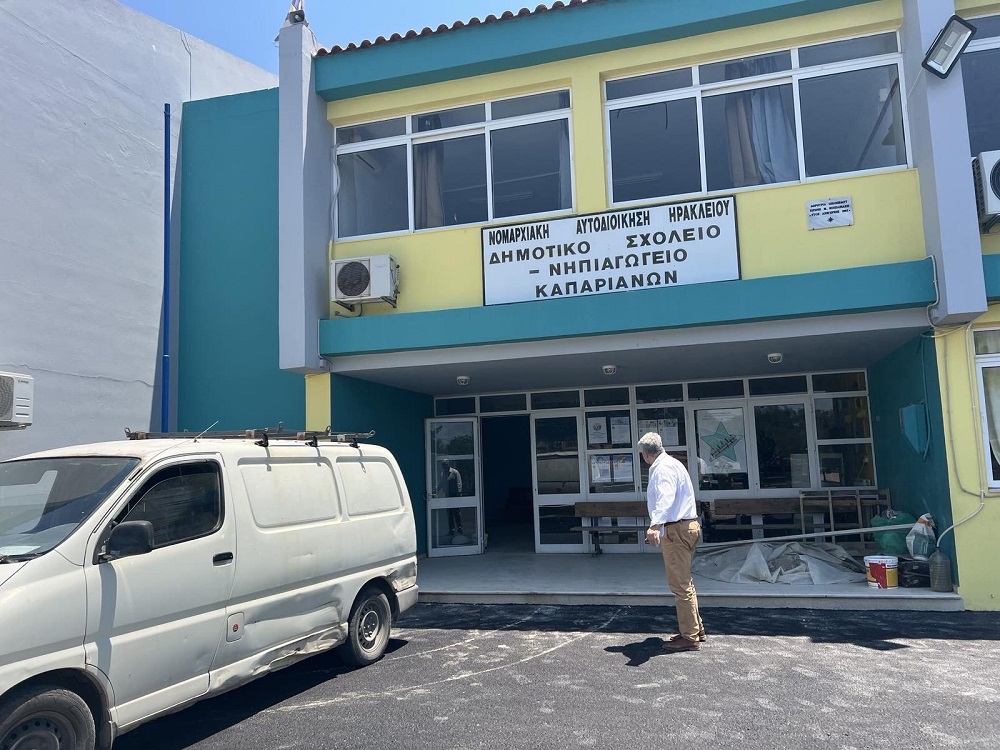 Επιπλέον, παρεμβάσεις πραγματοποιούνται στο Δημοτικό Σχολείο Πόμπιας, τις επόμενες ημέρες ξεκινούν στο Δημοτικό Σχολείο Ζαρού και Νηπιαγωγείο Ζαρού, όπως επίσης υλοποιούνται και στο Γυμνάσιο Τυμπακίου με συγχρηματοδότηση από τον Δήμο και την Περιφέρεια Κρήτης.