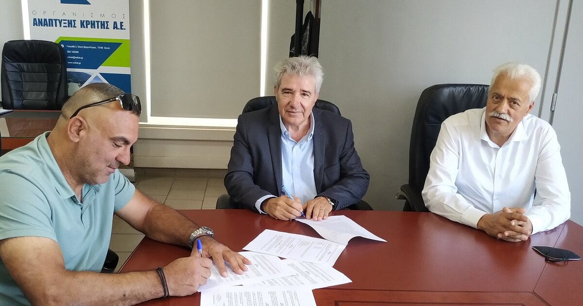 Την σύμβαση του έργου «Νέα Δεξαμενή Άρδευσης Δυτικού Τμήματος Ζώνης Ι –Δυτικού Αποκόρωνα και έργα σύνδεσης με την υφιστάμενη Δεξαμενή και Αρδευτικά Δίκτυα», υπέγραψαν την Δευτέρα 16/5/2022 στα Χανιά, ο Διευθύνων Σύμβουλος του Οργανισμού Ανάπτυξης Κρήτης, κ. Άρης Παπαδογιάννης και ο ανάδοχος, κ . Αντώνιος Περιδικάκης, υπό την παρουσία του Δημάρχου Αποκορώνου, κ. Χαράλαμπου Κουκιανάκη.