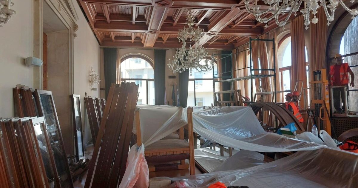 Ξηλώνονται κουφώματα- Πώς χειρίστηκαν τα παλαιά βιτρό στο ιστορικό κτήριο του δημαρχείου